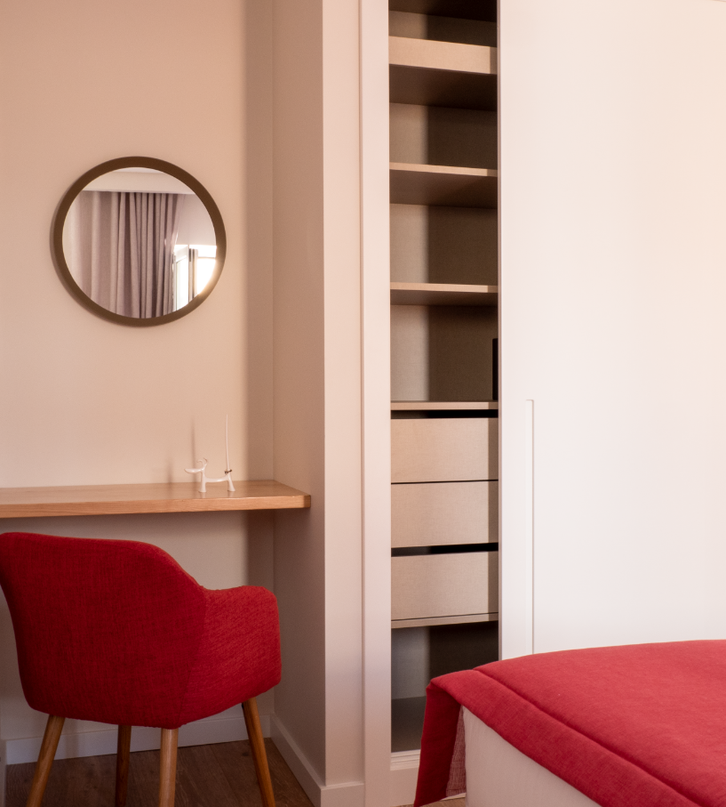 Os objetivos gerais e as vertentes do projeto de design de interiores foram articulados com a visão e acompanhamento do cliente; conseguiu-se assim uma dinâmica de parceria, que ajudou e potenciou o resultado final.